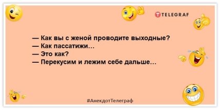 Сегодня "Телеграф" подготовил для вас новую подборку анекдотов о наступивших выходных.