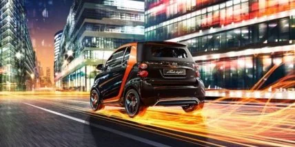В салоне Smart Fortwo Flashlight используется обивка сидений из кожи с тканевыми вставками и контрастными оранжевой строчкой. Внутри также имеется трехспицевый спортивный руль с кожаной отделкой и уникальные коврики.