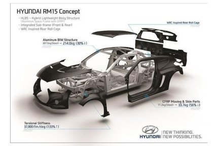 Корейцы подошли к Нью-Йоркскому автосалону предельно прагматично, выставив на суд публики новую Kia Optima и кроссовер Tucson в американской спецификации. Параллельное мотор-шоу в Сеуле дело другое: здесь россыпь концепт-каров, среди которых затесалась вариация на тему среднемоторного шоу-кара Veloster Midship, представленного в прошлом году. RM15, его преемник тоже приводится в движение 300-сильным двигателем объемом 2,0 л Theta T-GDI и пиком тяги в 383 Нм при 2000 об/мин (коробка передач ручная 6-ступенчатая), но имеет существенные конструктивные отличия от предшественника.