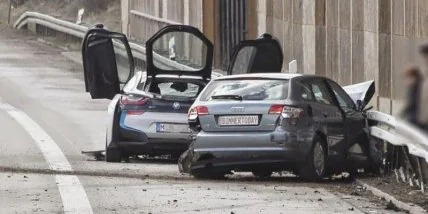 Одна из первых аварий произошла с суперкаром BMW i8. По имеющейся информации, именно водитель баварца спровоцировал ДТП с Audi A3. К счастью, похоже, что никто сильно не пострадал. Само собой, кроме автомобилей. Напомним, что BMW i8 имеет гибридную силовую систему, включающую 1,5-литровый трехцилиндровый двигатель TwinPower Turbo, электродвигатель и литий-ионный аккумулятор. Общая мощность составляет 362 л.с. (266 кВт). Этого достаточно, чтобы разогнаться до 100 км/ч всего за 4,4 секунды. Максимальная скорость, как обычно для немецких автомобилей, ограничена электроникой на отметке 250 км/ч. Средний расход топлива составляет 2.1 литра на 100 км.