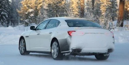 Вторым в прицелы фотокамер папарацци попал обновленный Quattroporte. В отличие от кроссовера, флагманский седан тестируется в снегах Швеции. Пока все изменения Quattroporte сконцентрированы в задней части – здесь, судя по всему, появился новый, прикрытый камуфляжем и снегом бампер. Но это только начало: у серийной версии рестайлингового седана точно появится новый бампер, пересмотренная решетка радиатора и модернизированная оптика.