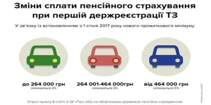 В соответствии с пунктом 8 Статьи 4 Закона Украины «О сборе на обязательное государственное пенсионное страхование» с 2017 года пенсионный сбор на авто составляет: