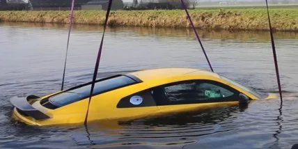 В Нидерландах водитель Audi R8 не справился с управлением и утопил дорогое авто в реке. Курьезное ДТП произошло на днях возле городка Абкауде в Нидерландах. Житель Германии утопил свое ярко-желтое купе Audi R8 2016 в реке Ангстел. К счастью, в аварии никто не пострадал. Водителю удалось выбраться из затопленного авто через окно. Однако суперкар Ауди пришлось доставать из реки при помощи крана. Позже оказалось, что это самое мощное купе Audi R8 V10 Plus. Его 5,2-литровый двигатель развивает 610 л. с. Разгон до 100 км/ч занимает 3,2 с, а максимальная скорость достигает 330 км/ч. Со столь мощным авто справится не каждый водитель, особенно в зимний период, даже несмотря на полны привод. С виду автомобиль-утопленник не слишком пострадал. Однако можно предположить, что вода нанесла серьезный вред электронике авто. Так что ремонт может оказаться весьма недешевым. Для справки, цена Ауди Р8 в этом исполнении в Германии составляет 190 тыс. евро.