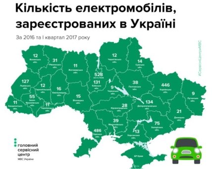 В указанный период первые номерные знаки украинского образца получили 2 284 электромобиля. Как сообщил руководитель ГСЦ МВД Владислав Криклий, наибольший спрос на электрокары наблюдается в Киеве, Одесской, а также Харьковской областях. Далее следуют Днепропетровская, Львовская, Киевская и Запорожская области.