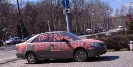 В городе Мелитополь Запорожской области прохожие увидели необычную картину - припаркованном седане Toyota Camry красовалась надпись - “Позвони. Я беременна”. Это было сделано с помощью баллончика с краской и по всей длине кузока - не заметить такое невозможно.