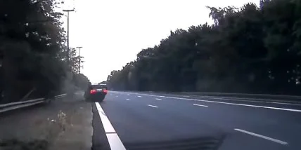 В первую очередь, обратите внимание на качество дорожного полотна. Похоже, трасса Париж-Амстердам прекрасна. Но на территории Бельгии на этой дороге произошло ДТП. Автомобиль, сильно напоминающий Ниссан Кашкай, сбившись с направления на высокой скорости, ударился о заграждение и, перевернувшись, тормозил уже на крыше. Происшествие сильно напоминает недавнее ДТП, в котором Тойота чуть не перевернулась.