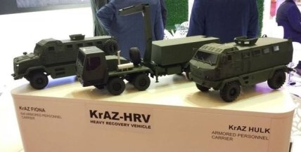 Нашу страну представлял стенд ГП «Укроборонсервис», на котором можно было увидеть продукцию различных предприятий, в том числе и ЧАО «АвтоКрАЗ». В частности это макет бронеавтомобиля КрАЗ-Фиона, и макет прототипа тяжелого эвакуационного автомобиля КрАЗ-HRV 8×8.
