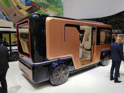 Здесь же на стенде можно полюбоваться и на беспилотные электрические шаттлы, которые должны выйти на дороги уже через пару лет. Это модель e.Go Move для работы на оживленных городских улицах в качестве маршрутного такси – с широкой двустворчатой дверью и накопительной площадкой в салоне.