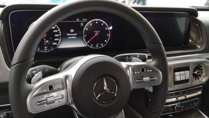 Специалисты немецкой компании также поработали над салоном "Гелентвагена". Интерьер получил отделку из двухцветной кожи Nappa, а взгляд сразу приковывает полностью цифровая приборная панель, объединенная с мультимедийным комплексом в кажущийся единым блок.