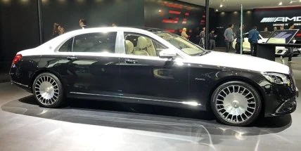 Maybach S560 получил эксклюзивную краску, которая оценивается в 14 280 евро. Верхняя часть кузова окрашена в арагонитовое серебро Maybach Manufaktur, а нижняя - в антрацитовой синий цвет. Роскошный внешний вид удачно подчеркивает комплект полированных многоспицевых 20-дюймовых колесных дисков, которые оценены в 5 890 евро.