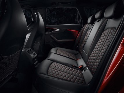 Салон Audi RS4 Avant отделан алькантарой с контрастной красной прострочкой и вышивкой "RS" на спинках сидений. В список оснащения входит усеченный снизу трехспицевый руль, цифровая приборная панель Virtual Cockpit и 10,1-дюймовый тачскрин фирменной медиасистемы MMI. Под капотом остался прежний 2,9-литровый битурбо V6, который выдает 450 лошадиных сил и 600 Нм крутящего момента.