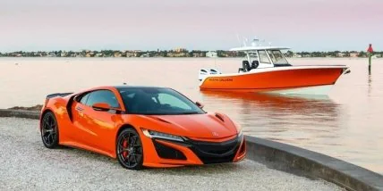 Кроме мощных двигателей, SJ32 имеет роскошный дизайн и множество функций для занятий спортом. Особенность модели подчеркивает яркий оранжевый цвет от суперкара Honda / Acura NSX. Интересно, что лодка оказалась вдвое, а то и втрое дороже автомобиля – стоимость Honda Marine SJ32 колеблется от 300 000 до 450 000 долларов, в зависимости от выбранных опций.