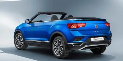 Кабриолет Volkswagen T-Roc дебютировал в сентябре 2019 года на автосалоне во Франкфурте. Автомобиль построен на базе трехдверной версии стандартного кроссовера T-Roc. Поднять или убрать мягкий складной верх можно за 9 секунд на скорости до 30 км/ч. Багажник стал немного меньше – пришлось выделить место для механизма крыши. Но при необходимости можно сложить второй ряд сидений. Специальное "окошко", ведущее из багажника в салон, позволяет перевозить длинномерные предметы.
