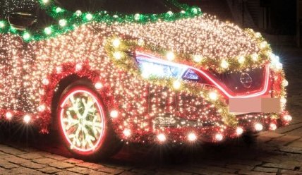 Электромобиль превратили в рождественскую елку (Фото)