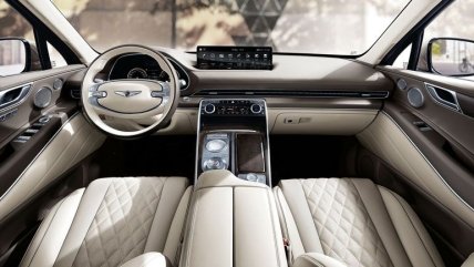 GV80 можно назвать полностью цифровым, от его комбинации приборов до 14,5-дюймового тачскрина информационно-развлекательной системы. Благодаря этому у водителя и пассажира на переднем сиденье будет множество систем, включая навигацию дополненной реальности.