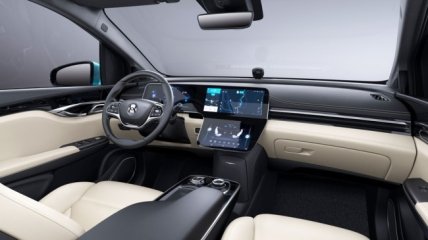 Салон укомплектован тремя дисплеями: двумя 12.3-дюймовыми («приборка» и «мультимедийка» с голосовым управлением) и 10.0-дюймовым (отвечает за климат-контроль и другие вспомогательные функции).