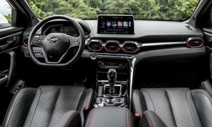 Оснастили кроссовер весьма богато: от бесконтактной зарядки для гаджетов до камер кругового видеообзора и полезных водительских ассистентов. При отделке салона производитель использовал кожу с яркой прострочкой.