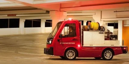 Компактная подключенная пожарная машина обладает функционалом своего полноразмерного аналога, но стоит при этом в 10 раз меньше (стоимость стандартной пожарной машины может достигать 500 тыс. долларов). Модель оборудована защищенным планшетом TOUGHBOOK FZ-G1 для навигации, получения и отслеживания информации о чрезвычайных ситуациях и связи с оператором. Относительно миниатюрные размеры позволят эффективно использовать этот электромобиль даже в очень ограниченных пространствах, куда не смогут проехать крупные машины.