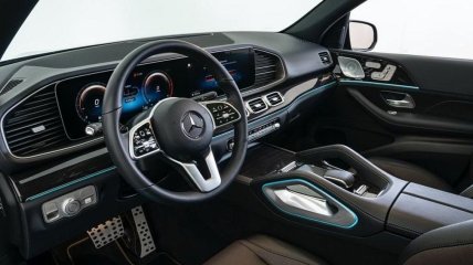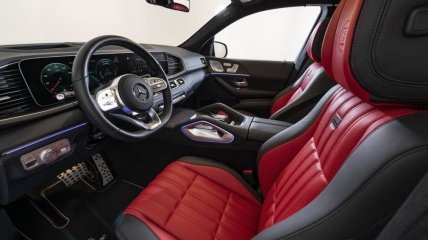 В салоне GLS появились кресла, отделанные красно-чёрной кожей, а в GLE - чёрно-коричневой. Также кроссоверам заменили накладки на пороги и педали, модернизировали контурную подсветку, установили новые коврики и поставили фирменные штифты фирменных замков.