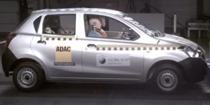 При фронтальном ударе на скорости 64 километра в час передняя часть кузова Datsun Go полностью смялась. Испытаниям подверглась базовая версия модели без подушек безопасности, поэтому голова манекена имела прямой контакт с рулевым колесом и приборной панелью.