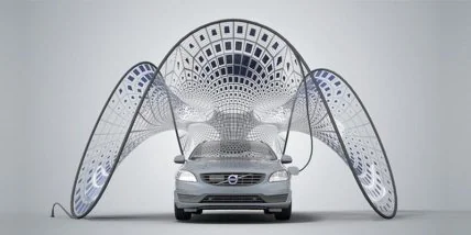 Более того, в сетку встроены фотоэлектрические элементы, так что павильон может поглощать энергию от солнца или внутреннего освещения, что делает его портативной зарядной станцией. В центре конструкции - дизельный гибрид Volvo V60, подключенный непосредственно к павильону. При первой необходимости конструкция легко складывается и помещается в багажник автомобиля.
