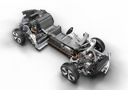 Кузов купе выполнен из особого пластика, усиленного карбоном. Это очень легкая и прочная конструкция, которая прекрасно поглощает энергию при ударе. BMW заявляет, что помимо сверхнизкого коэффициента сопротивления, у i8 еще и низко расположенный центр тяжести — на высоте всего в 45 см.