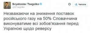 "Несмотря на снижение поставок российского газа на 50% Словакия будет выполнять все обязательства перед Украиной по реверсу", - написал он.