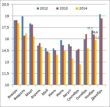 Как отголосок войны на востоке — падение производства кокса и продуктов нефтепереработки в ноябре на 40 с лишним процентов (в целом по году — 19,6%). И если раньше в этой отрасли беспокоил прежде всего уровень отечественного производства дизельного топлива и бензинов, то теперь — кокса и полукокса. За 11 месяцев последних произведено на 20,3% меньше, чем годом ранее. Правда, радует, что есть прирост на 3% по сравнению с октябрем — это робкий признак того, что донбасские коксохимы несмотря ни на что реанимируют схемы поставок своей продукции на металлургические предприятия.