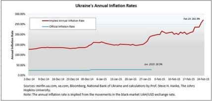 Напоминая, что по официальным сообщениям, инфляция в Украине составляет 28,5%, профессор заявляет, что настоящий ее уровень на сегодня 272%.