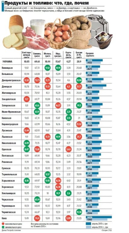 В то же время на сайте Госслужбы статистики появилась новая рубрика — мониторинг цен на социально значимые товары по всем областям, кроме Крыма. Используя эти данные и средние зарплаты жителей регионов (см. инфографику), журналисты выяснили, где в Украине жить дешевле, передает finance.ua со ссылкой на Сегодня.
