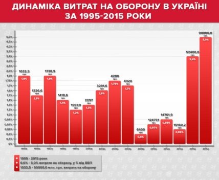 Сколько Украина тратит на оборону: от 1995 до 2015 года
