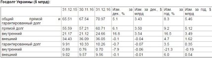 Госдолг Украины в 2016г вырос на 8,3% в долларовом выражении.