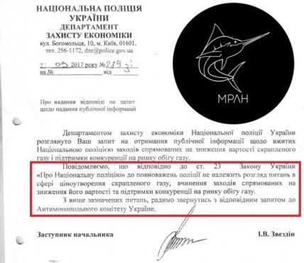 "К полномочиям полиции не входит рассмотрение вопросов в сфере ценообразования сжиженного газа, совершение мероприятий, направленных на снижение его стоимости и поддержки конкуренции на рынке оборота газа. Из выше указанных вопросов, советуем обратиться с соответствующим запросом в Антимонопольный комитет Украины", - сообщил заместитель начальника Департамента защиты экономики Национальной полиции Украины Игорь Звездин.