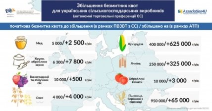 Отметим, что регламент ЕС относительно автономных торговых преференций увеличит объемы сельскохозяйственной продукции, которую Украина может экспортировать в ЕС по Соглашению об ассоциации, не платя таможенные пошлины.