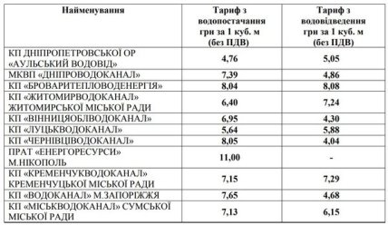 Документом предлагается установить тарифы на услуги по централизованному снабжению холодной водой, водоотведению (с использованием внутридомовых систем) таким лицензиатам НКРЭКУ за 1 куб. м (без НДС):