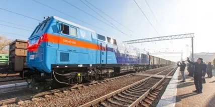 "Локомотив довольно легко, как отметили присутствующие железнодорожники, тронул с места состав из 48 груженых вагонов общим весом 4500 тонн. Далее маршрут поезда пролегает к станции Ромодан", – говорится в сообщении.