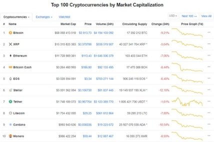 Большинство альткоинов также начали свое падение вместе с биткоином.