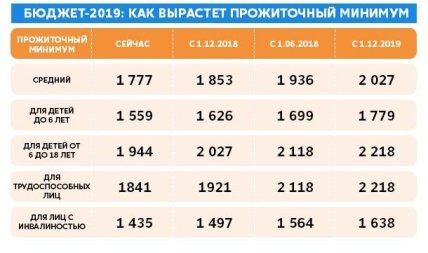 В 2019 году прожиточный минимум будет повышаться дважды: с 1 июля до 1936 грн, а с 1 декабря – до 2027 грн. Напомним, по состоянию на 1 января прожиточный минимум составлял 1700 грн, сейчас – 1777 грн, а с 1 декабря 2018 года должен еще раз подняться – до 1853 грн.