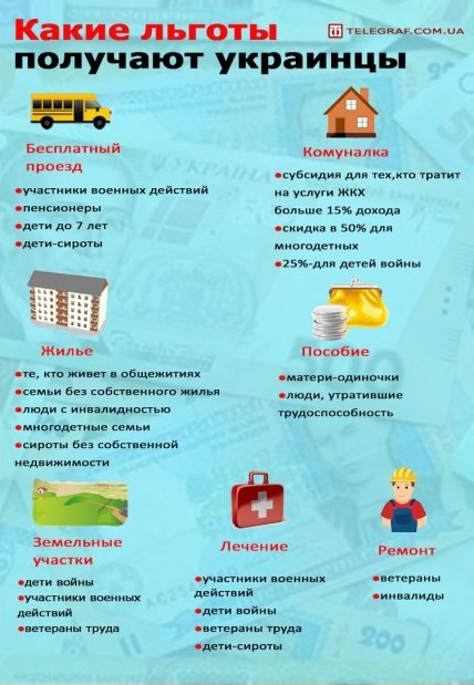 В Украине разными льготами уже пользуется 44% населения. В отопительный сезон, когда растет количество субсидиантов, эта цифра может быть даже выше. Бесплатный проезд, зубное протезирование, предоставление жилья и земельных участков, дополнительный отпуск, лечение в санаториях, компенсация расходов на бензин, бесплатный капитальный ремонт квартиры. Это только часть льгот, на которые претендуют отдельные категории украинцев. Многие даже не знают о том, что, к примеру, имеют право на бесплатный земельный участок.