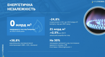 Энергонезависимость. Более 3 лет Украина не импортирует российский газ. Зато нарастили собственную добычу, увеличили долю "зеленой энергетики" и внедряем технологии эффективного потребления . За год уменьшили потребление более 14 млрд м3 до 10.6 м3.