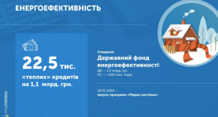 Энергоэффективность. Более 1,1 млрд грн – это объем "теплых кредитов", которыми активно пользуются украинцы. В этом году мы расширяем перечень вспомогательных инструментов и запускаем Фонд энергоэффективности. Его объем финансирования – 1,5 млрд грн из государственного бюджета и около 100 млн евро от Евросоюза.