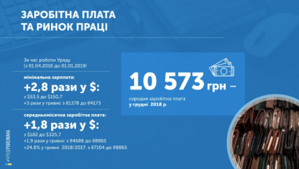 Рост зарплат. Средняя зарплата в 2018 году выросла в 1,9 раза: с 4686 грн до 8865 грн. В декабре 2018 года средняя зарплата составляла уже 10 573 грн.