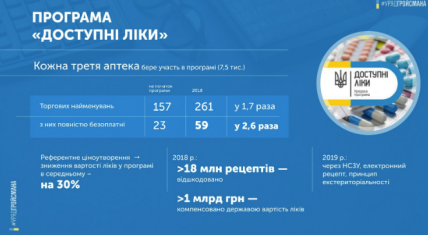 Агропромышленный комплекс. АПК – рекордные объемы урожая (70 млн тонн) и почти 40 % валютной выручки страны. У правительства есть несколько программ развития. Среди них: удешевление техники, восстановление животноводства и прямая поддержка фермеров. Более 7,5 тыс. фермерских хозяйств получили в 2018 году 764 млн грн.