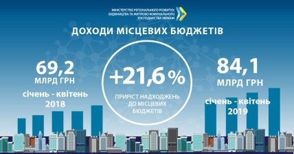 За четыре месяца 2019 года поступления в местные бюджеты выросли более, чем на 21% по сравнению с аналогичным периодом прошлого года.