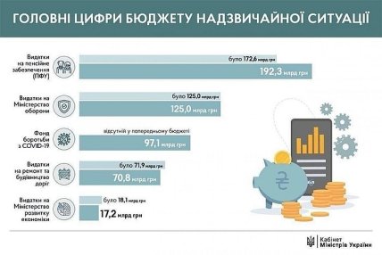 Представляя проект, премьер-министр Украины Денис Шмыгаль назвал его приоритетом финансирование борьбы с коронавирусом, включая повышение расходов на медицину на 16,4 млрд грн, пенсионное обеспечение – на 29,7 млрд грн, социальные расходы – на 19,5 млрд грн.