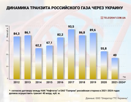 Поскольку в 2019 году был начат процесс анбандлинга – отделения деятельности по транзиту газа, сосредоточенной в компании ООО «Оператор ГТС Украины», 30 декабря 2019 года был заключен договор между НАК «Нафтогаз Украина» и ПАО «Газпром», согласно которому российская сторона обязалась осуществить транзит по украинской ГТС 65 млрд. куб. м. в 2020 году и по 40 млрд. куб. м. в 2021-2024 годах. Однако на деле «Газпром» предоставил для транзита лишь 55,8 млрд. куб. м. природного газа.