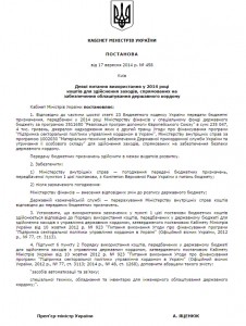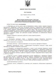 "Согласно части шестой статьи 23 Бюджетного кодекса Украины передать бюджетные назначения, предусмотренные в 2014 году Министерству финансов в специальном фонде государственного бюджета по программе 3511650 “Реализация программ помощи Европейского Союза” в сумме 235 047, 4 тыс. гривен, источником поступления которых является второй транш Соглашения о финансировании программы “Поддержка секторальной политики управления границей в Украине”, Министерству внутренних дел по программе 1002030 “Материально-техническое обеспечение Государственной пограничной службы Украины и содержание ее личного состава” для осуществления мер, направленных на обеспечение безопасности государственной границы", — указано в документе.