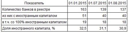 Как сообщало агентство, за 2014 год доля иностранного капитала в банковской системе уменьшилась с 34,0% до 32,5%.