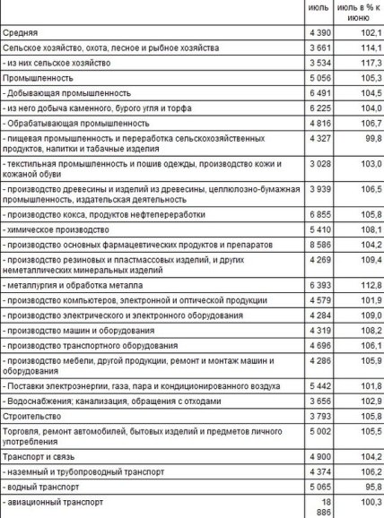 В Госстате сообщили об увеличении средней зарплаты в июле