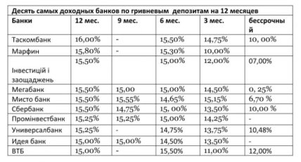 В десятке "щедрых" финучреждений, которые предлагали наиболее высокие ставки по годовым гривневым вкладам, произошли небольшие изменения. Банк Форвард, который еще две недели назад уступил свою лидерскую позицию ТАСкомбанку, продолжил снижать ставки. За последние 2 недели гривневые вклады в банке на 12 месяцев подешевели на 1,7%. После этого Форвард выбыл из нашей десятки. Вместо него в перечень самых "щедрых" вошел ВТБ.